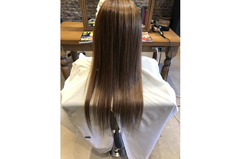 今回は美髪チャージの際カラーの退色があるので少し暗めでリタッチをしてシャンプー台でもみこみ少し暗めにしておいてから美髪チャージの施術しました。